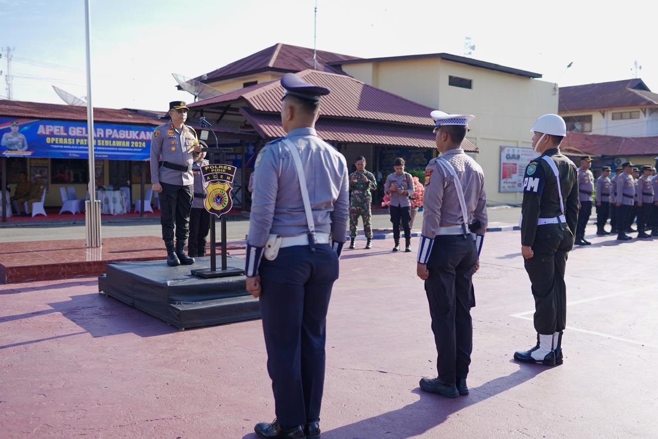 Pada kesempatan tersebut Kapolres Pidie AKBP Jaka Mulyana, S.I.K., M.I.K membacakan amanat Kapolda Aceh yaitu Pelaksanaan operasi patuh seulawah 2024 dalam bentuk harkamtibmas bidang lalu lintas yang didukung instansi terkait akan dilaksanakan selama 14 hari, mulai tanggal 15 Juli sampai dengan 28 juli 2024 di seluruh wilayah Provinsi Aceh dengan mengedepankan kegiatan edukatif, persuasif dan humanis dan penegakan hukum guna meningkatkan disiplin masyarakat dalam berlalulintas.