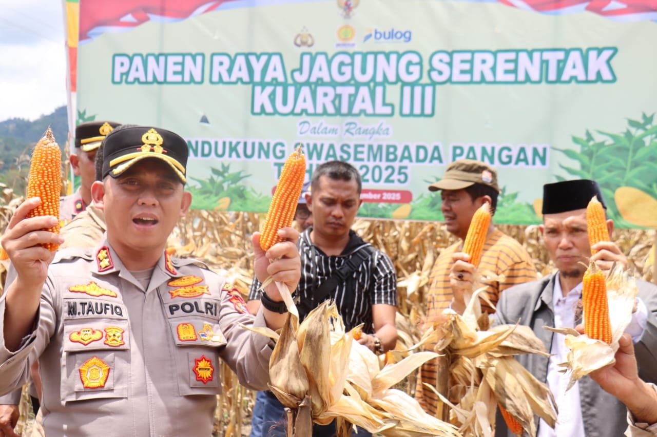 Semangat swasembada pangan kembali bergema di Bumi Gayo. Sabtu (27/9/2025) pagi, Kapolres Aceh Tengah bersama Forkopimda dan masyarakat melaksanakan panen raya jagung serentak kuartal III di lahan produktif Kampung Mulie Jadi, Kecamatan Silih Nara.