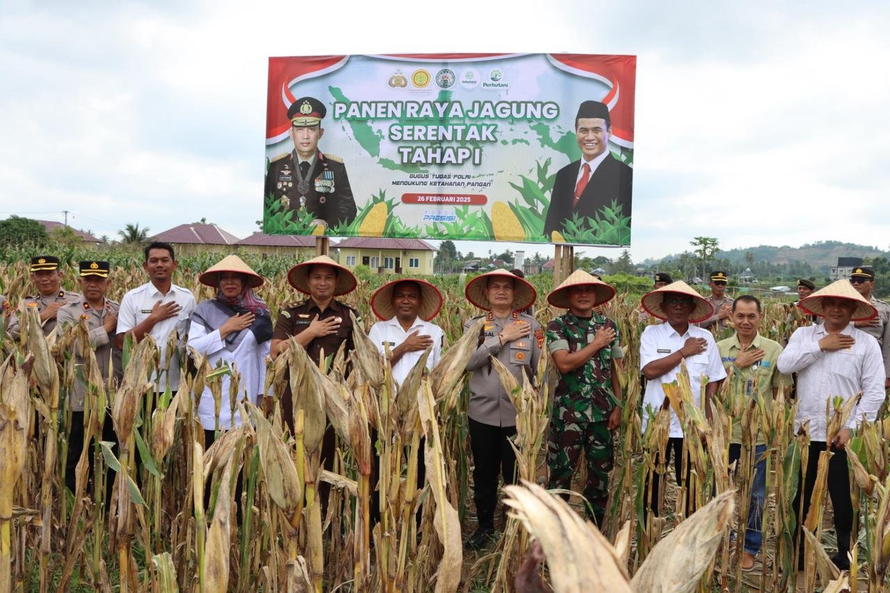 Pidie Jaya – Dalam langkah nyata mendukung ketahanan pangan nasional, Polres Pidie Jaya menggelar Panen Raya Jagung Serentak Tahap I di lahan jagung Mako Polres Pidie Jaya, Gampong Teungklut, Kecamatan Trienggadeng, Rabu (26/2/2025).