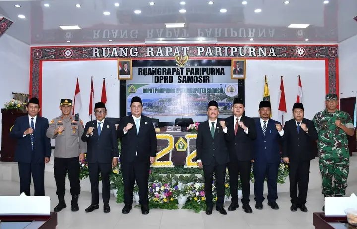 Pemerintah Kabupaten Samosir bersama DPRD menggelar Rapat Paripurna Istimewa dalam rangka Peringatan Hari Jadi ke-22 Kabupaten Samosir, Rabu (7/1/2026). Dalam kesempatan tersebut, Bupati Samosir Vandiko T. Gultom menegaskan bahwa Kabupaten Samosir terus berbenah dan membangun di tengah berbagai keterbatasan melalui penyelenggaraan pemerintahan, pembangunan, dan pembinaan kemasyarakatan.