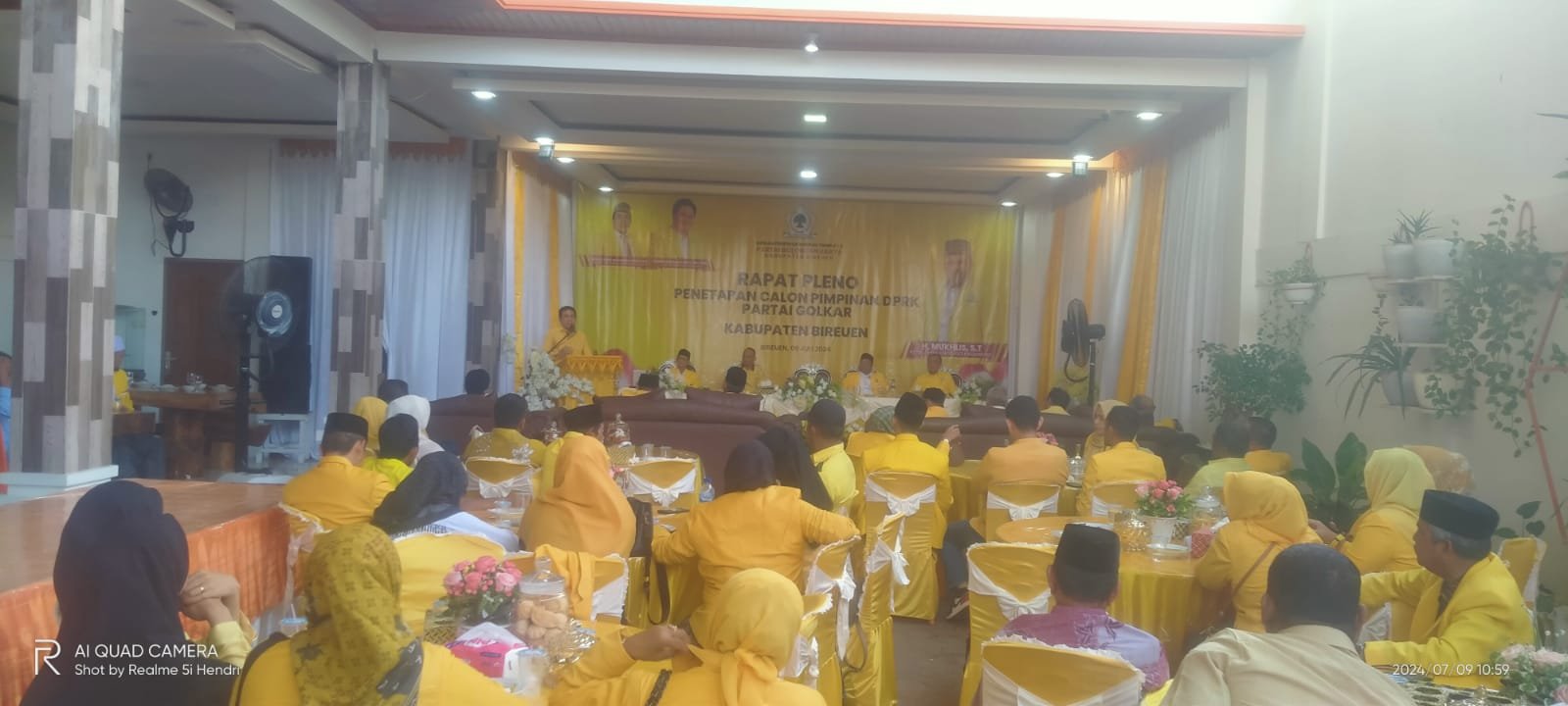 Komisi Independen Pemilihan (KIP) Kabupaten Bireuen menetapkan, partai berlambang pohon beringin Berhasil meraih 09 kursi dari 40 kursi yang ada. Terkait perolehan kursi itu, pimpinan DPD-I dan DPD-II Partai Golkar mengelar rapat pleno penetapan calon pimpinan Dewan Perwakilan Rakyat Kabupaten (DPRK) sesuai dengan surat edaran DPP, DPD-I dan Rapimnas, Rapat pleno tersebut dibuka oleh Ketua DPD-I Partai Golkar, Drs.H.Teuku Muhammad Nurlif, SE.