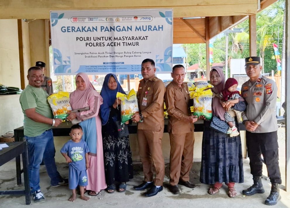 Aceh Timur – Aula Mapolsek Pante Bidari, Selasa (12/8/2025), berubah menjadi pusat keramaian. Ratusan warga dari berbagai gampong berdatangan sejak pagi, tak ingin ketinggalan kesempatan mendapatkan beras murah berkualitas. Hanya dalam hitungan jam, 200 zak beras Stabilisasi Pasokan dan Harga Pangan (SPHP) kemasan 5 kilogram yang dijual Rp60.000 per sak habis terjual.