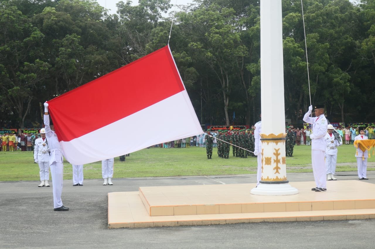 Pembacaan teks Proklamasi oleh Suprianto Ketua Dewan Perwakilan Rakyat Kabupaten (DPRK) Aceh Tamiang, serta pengucapan hening cipta oleh Pj. Bupati Aceh Tamiang.