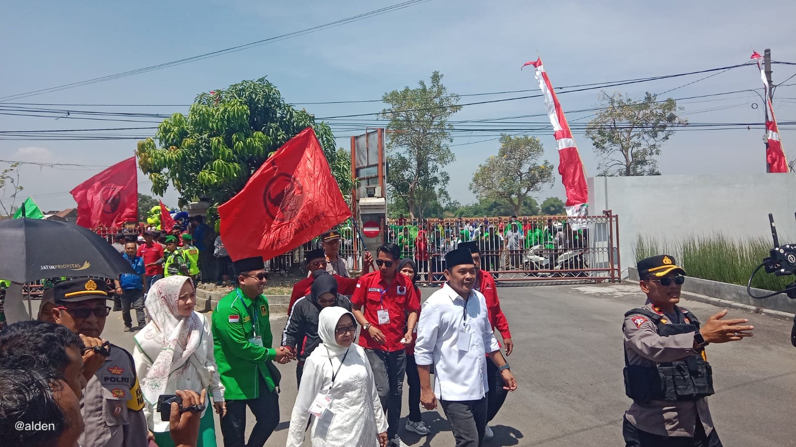 Mundjidah dan Sumrambah tampak berdiri di atas mobil yang terbuka tersebut sambil melambaikan tangannya ke arah pendukung yang sejak pagi sudah menunggu di depan kantor KPU.
