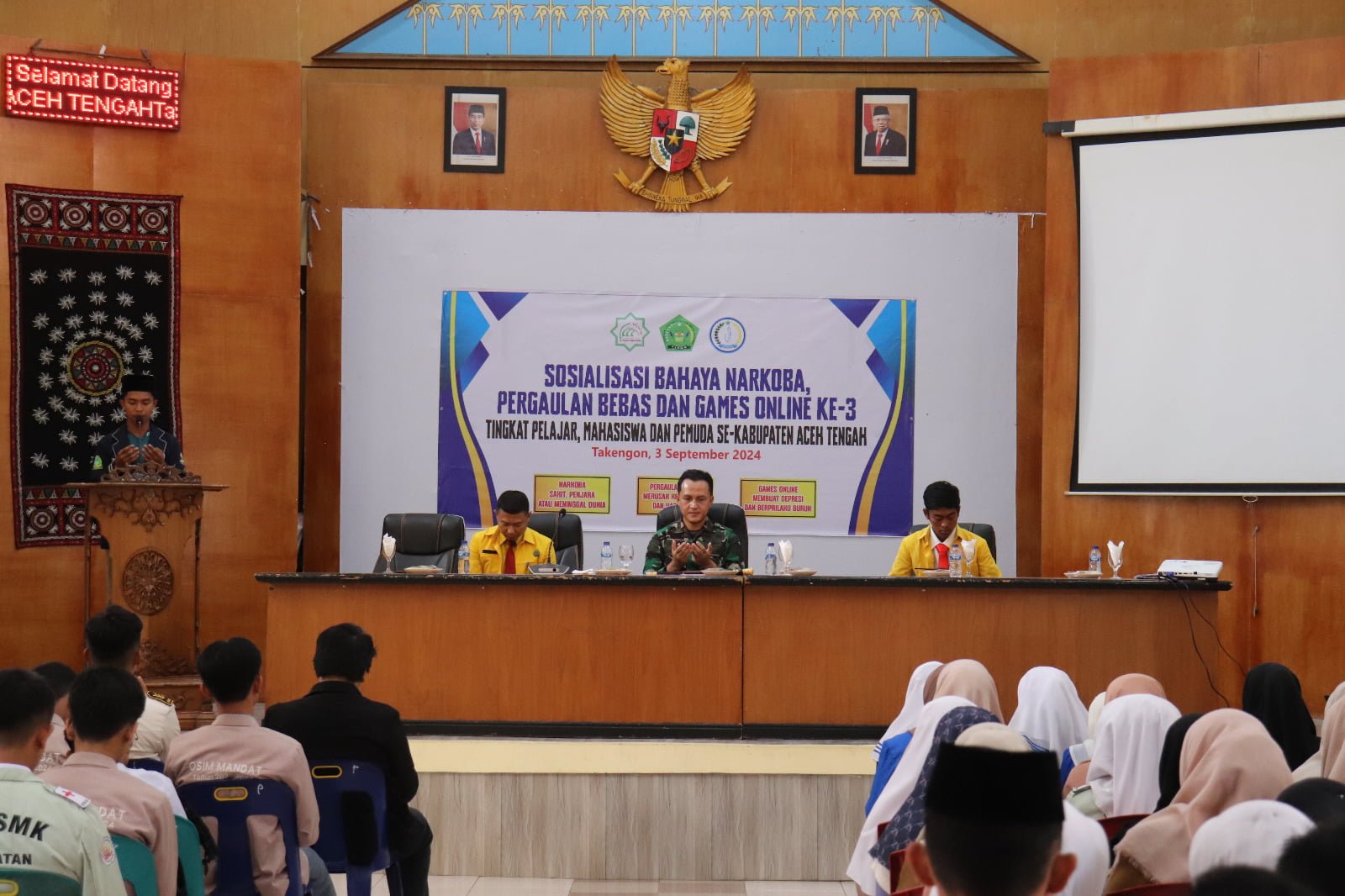 Dandim 0106/Aceh Tengah, Letkol Inf Kurniawan Agung Sancoyo S.E.M.Han. dalam kegiatan itu menyampaikan upaya Kodim 0106/ Aceh Tengah dalan menangani Penyalahgunaan Narkoba, pergaulan bebas, dan Games Online terus memberikan himbauan dan pendidikan kepada masyarakat khususnya generasi muda tentang bahaya dan efek yang akan ditimbulkan akibat penyalahgunaan narkoba, pergaulan bebas maupun game/judi online baik dalam bentuk penyuluhan/sosialisasi maupun dengan memasang pamplet/banner di desa-desa ataupun perkotaan.