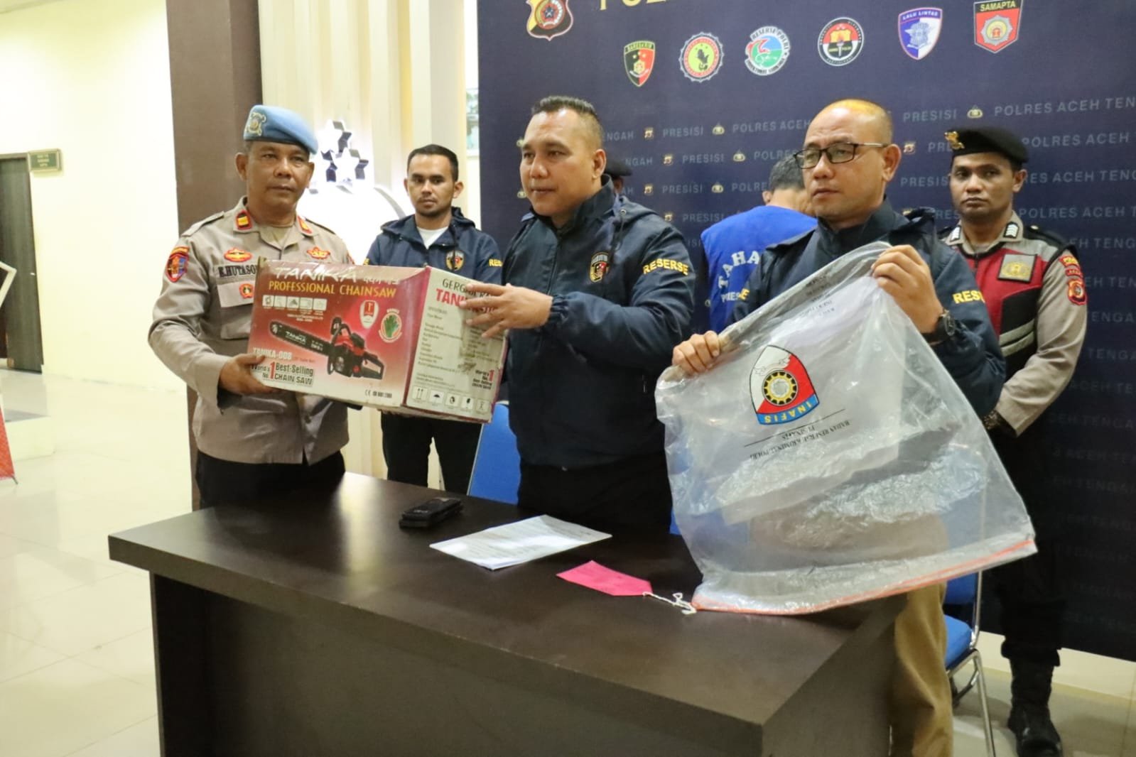 Kapolres Aceh Tengah AKBP Muhamad Taufiq, S.I.K., M.H., melalui Kasat Reskrim IPTU Deno Wahyudi, S.E., M.Si., menjelaskan bahwa tersangka dijerat Pasal 92 Ayat (1) huruf a dan b Undang-undang Nomor 18 Tahun 2013 tentang Pencegahan dan Pemberantasan Perusakan Hutan sebagaimana diubah dengan UU Nomor 6 Tahun 2023 tentang Cipta Kerja.