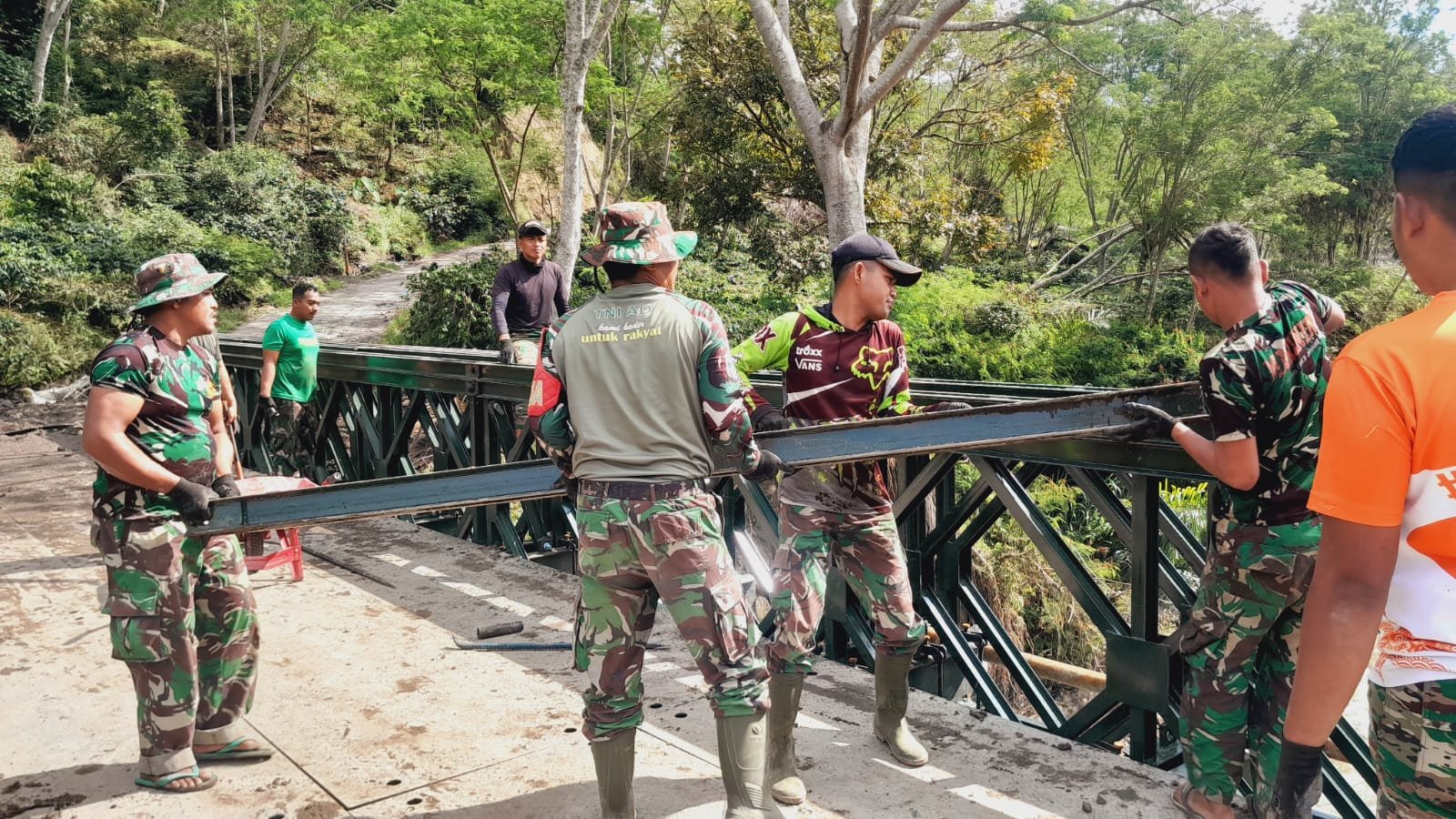 Pembangunan Jembatan Bailey Lukup Sabun Barat menjadi salah satu upaya TNI bersama masyarakat dalam mendukung percepatan pembangunan infrastruktur di daerah serta memperkuat konektivitas antarwilayah di Kabupaten Aceh Tengah.