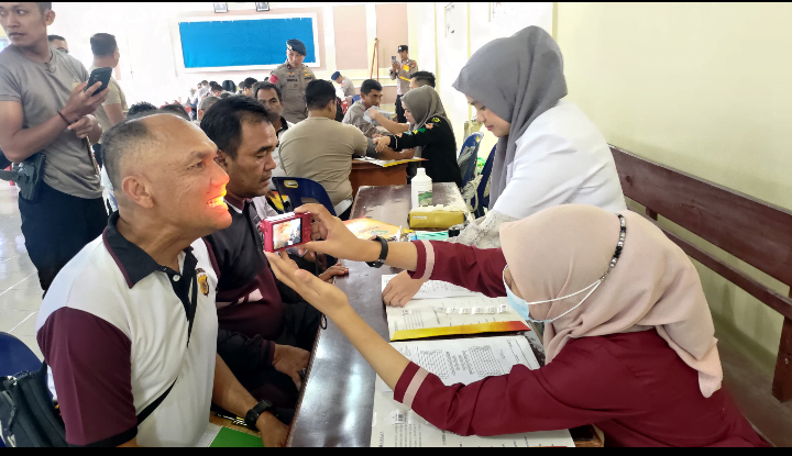 Redelong- satupena.co.id: Polres Bener Meriah kembali melaksanakan pemeriksaan kesehatan berkala bagi personel kepolisian dengan menggelar kegiatan Rikkesla yang diorganisir oleh Seksi Dokkes Polres Bener Meriah bekerja sama dengan Biddokkes Polda Aceh dan Laboratorium Bunda Thamrin. 1 Agustus 2024.