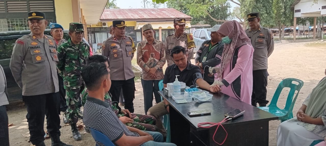 Kapolsek Gandapura AKP. Faisal SH.MH beserta anggotan yang ikut mendampingi pemerikasan pelayanan kesehatan untuk PPK, Panwascam dan PPS beserta warga dari saksi penyelenggara pemilu yang berhadir di tempat itu Kapolsek memberi semangat kepada petugas kesehatan dalam bertugas.