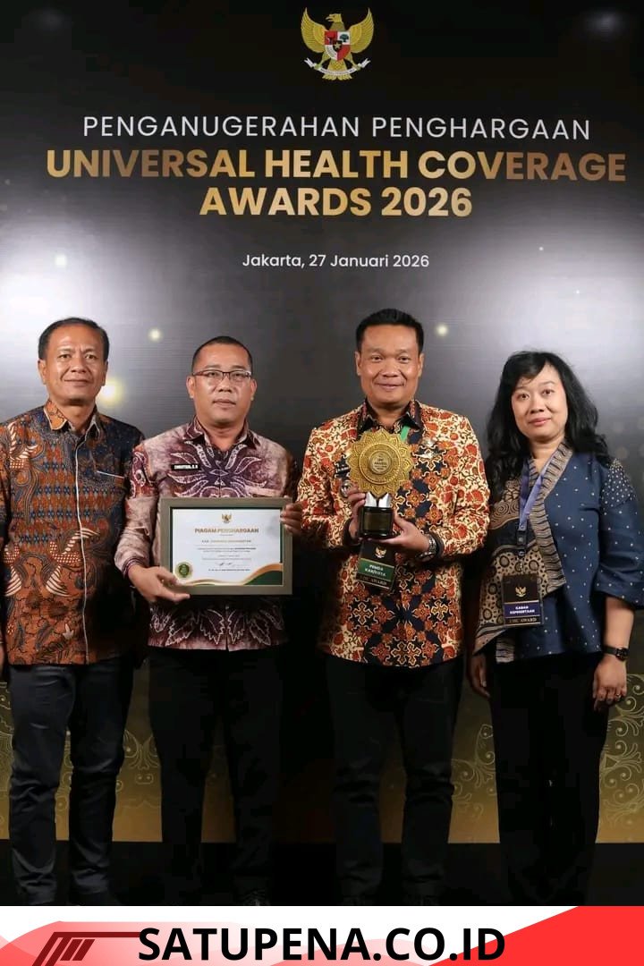Bupati Humbang Hasundutan Dr Oloan Paniaran Nababan SH MH menerima penghargaan UHC (Universal Health Coverage) Award 2026 Kategori Pratama sebagai bentuk apresiasi atas keberhasilan Kabupaten Humbang Hasundutan dalam memperluas cakupan kepesertaan program JKN (Jaminan Kesehatan Nasional).