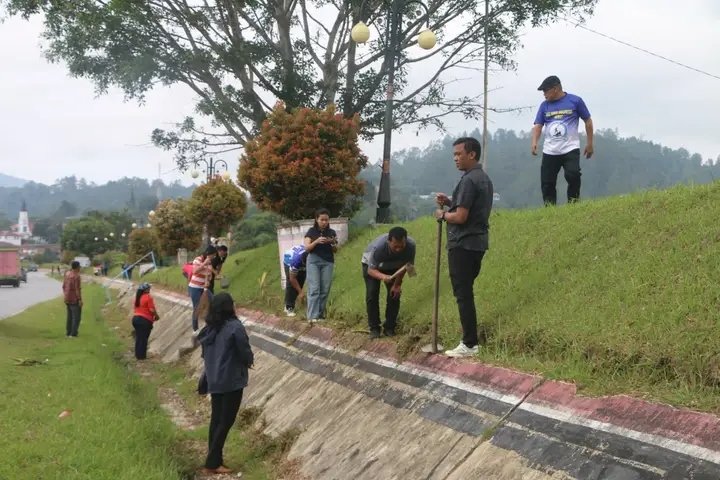 Pemerintah Kabupaten Tapanuli Utara melaksanakan kegiatan gotong royong di sekitar tanggul Sungai Aek Sigeaon, Tarutung, Jumat (13/3/2026).