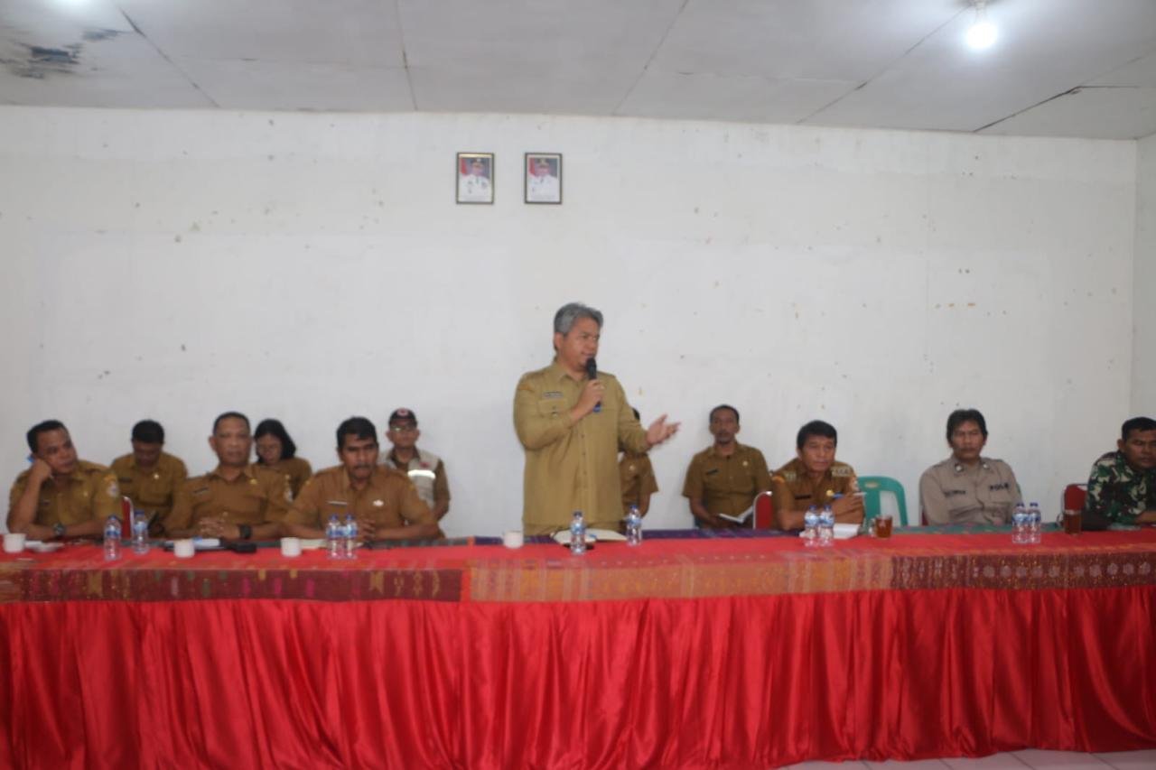 Rakor diawali laporan Camat Parmonangan dan para kepala desa terkait kondisi desa dan juga penyaluran bantuan.