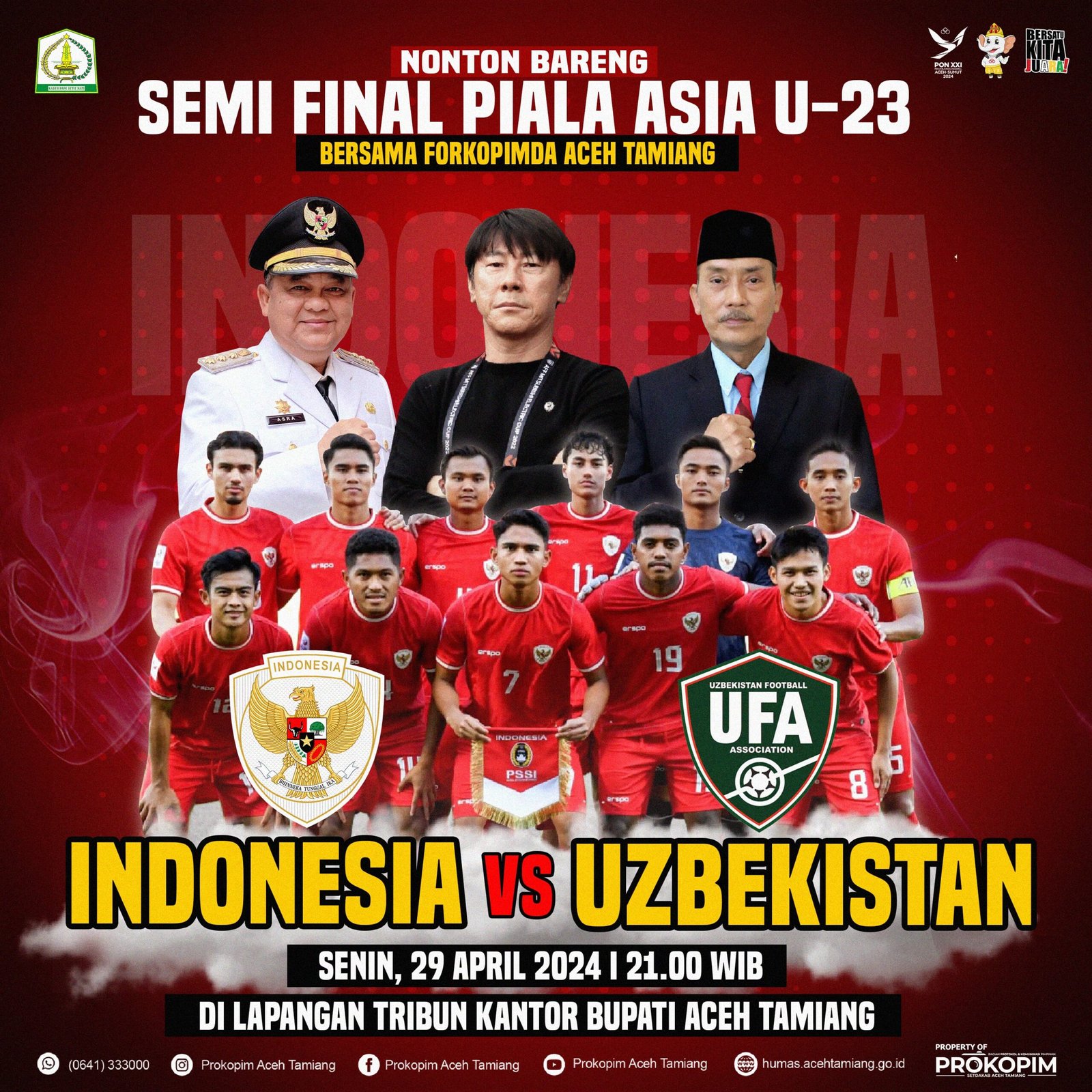 Pemkab Aceh Tamiang menggelar nonton bareng (nobar) pertandingan semifinal Piala Asia U-23 antara Indonesia vs Uzbekistan di lapangan upacara Kantor Bupati setempat, pada Senin (29/04/2024) malam tadi.