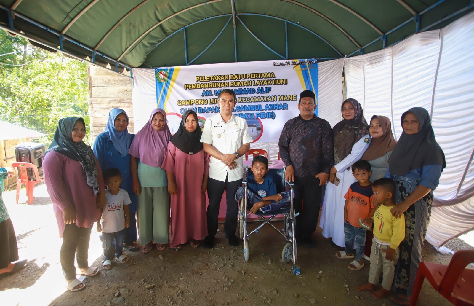 Peletakan batu pertama ini merupakan bantuan Pemerintah Kabupaten Pidie dalam bentuk RLH kepada keluarga Muhammad Alif (13) bocah pengidap penyakit Paraplegia yang membuat hilangnya kemampuan untuk menggerakkan anggota tubuh bagian bawah, dan penyakit ini sudah diderita oleh anak dari pasangan Alm. Supriana Ilyas & Nurlaili M. Jamil ini selama tujuh tahun.