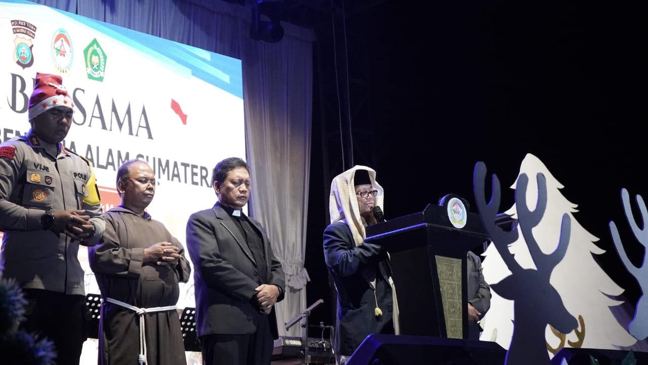 Acara dilanjutkan dengan penyalaan lilin dan doa bersama lintas agama untuk mendoakan saudara/i yang terdampak bencana alam. Doa bersama ini dibuka oleh Kapolres Kabupaten Toba, AKBP Vinsensius Jimmy Parapaga, S.I.K. Ia menyampaikan, “Di momen Natal ini, mari kita berdoa bersama lintas agama bagi saudara-saudara kita yang terdampak bencana, sekaligus menjadikannya pengingat untuk menjaga alam dan lingkungan tempat kita tinggal.”
