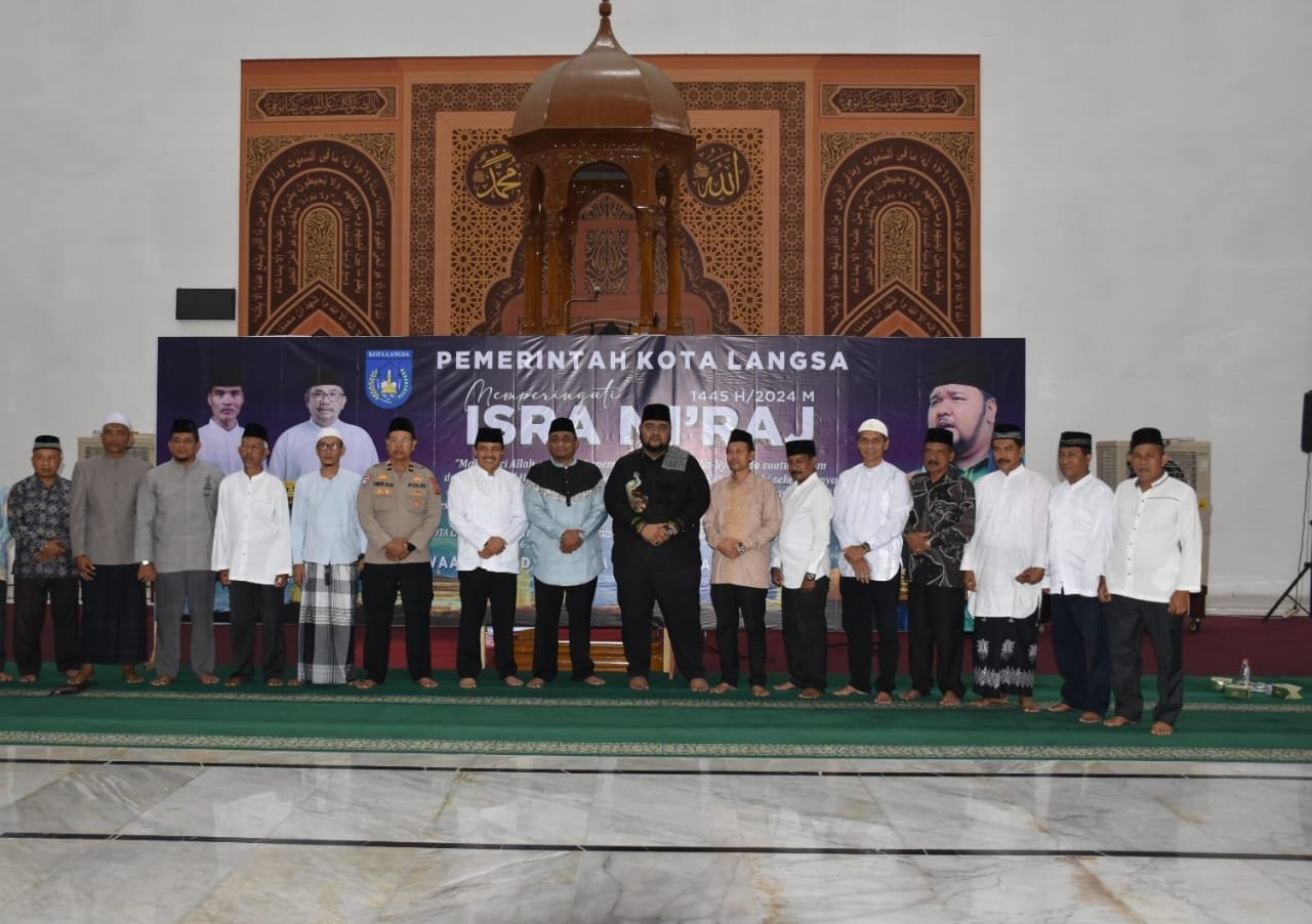 Kota Langsa | sarupena.co.id — Pemerintah Kota (Pemko) Pemko Langsa menggelar Tausiah dalam rangka memperingati Isra’ Mi’raj Nabi Muhammad SAW Tahun 1445 Hijriah/2024 Masehi di Masjid Agung Darul Fallah Kota Langsa, Rabu (7/2/2024).