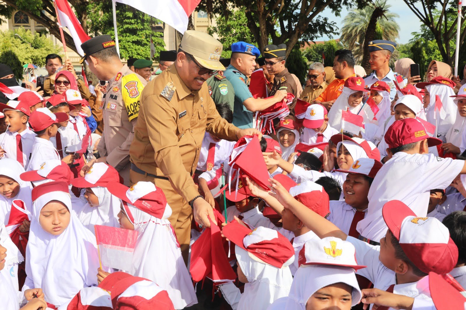 “Pemko berkomitmen penuh mendukung program pemerintah tentang gerakan pembagian 10 juta bendera merah putih di tahun 2024 ini. Pemko dalam rangka menyambut HUT RI ke 79, akan membagikan bendera kepada masyarakat untuk di kibarkan pada saat hari perayaan Kemerdekaan Republik Indonesia 17 Agustus 2024” ujar A Hanan di hadapan peserta apel.