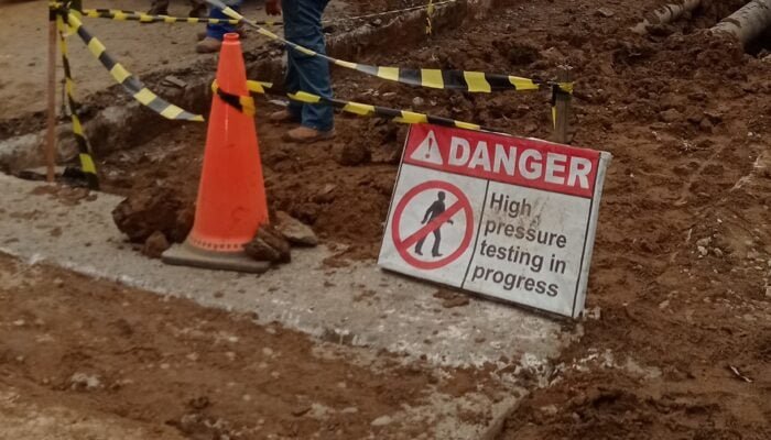 Erni salah satu penguna jalan mengeluhkan petugas/pekerja pemasangan pipa harusnya ada yang mengatur jalan karena menurut dia pagi itu jam sibuk banyak aktifitas.