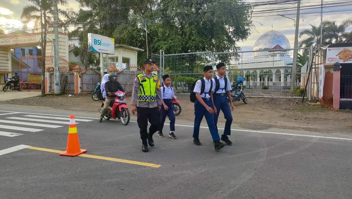 Sejak pukul 07.15 WIB, personel Polri telah bersiaga di lokasi-lokasi strategis untuk mengatur arus lalu lintas dan membantu menyeberangkan anak-anak sekolah serta pengguna jalan lainnya.