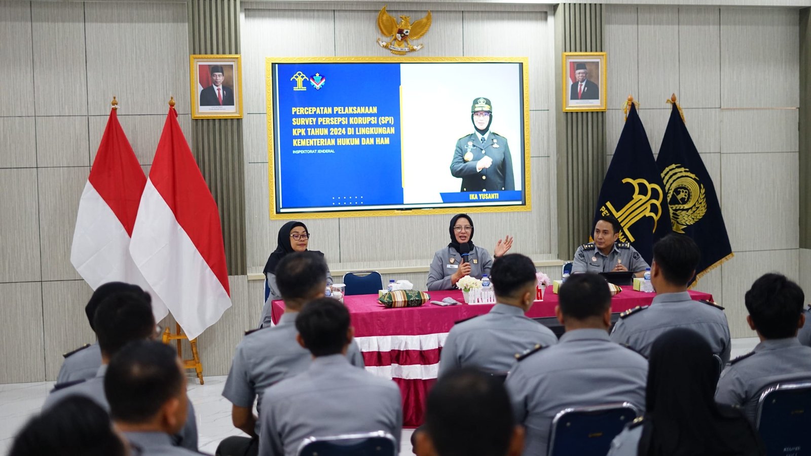 Pada kegiatan tersebut, Sekretaris Inspektorat Jenderal Kemenkumham RI, Ika Yusanti memaparkan tentang Penguatan Integritas melalui Survei Persepsi Korupsi (SPI) KPK Tahun 2024 di lingkungan Kantor Wilayah Kementerian Hukum dan HAM DKI Jakarta. Kegiatan ini bertujuan memperkuat integritas dan tata kelola pemerintahan melalui pelaksanaan SPI oleh Komisi Pemberantasan Korupsi (KPK), yang diharapkan dapat mendukung reformasi birokrasi serta menciptakan budaya kerja yang berlandaskan nilai-nilai BerAKHLAK.