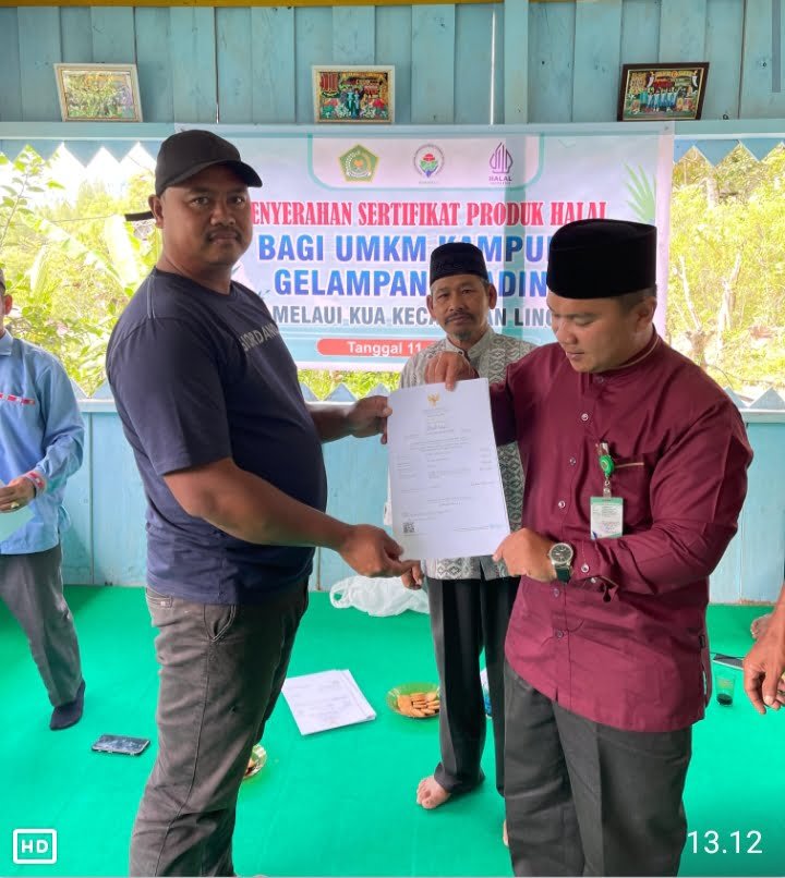 kampung gelampang gading Kecamatan Linge Kabupaten Aceh Tengah,melaksanakan penyerahan sertifikasi halal oleh Kepala KUA kecamatan Linge 11/07/2024, Beliau menghimbau para pelaku usaha dilingkungannya yang belum bersertifikasi halal untuk mempersiapkan diri melaksanakan sertifikasi halal.