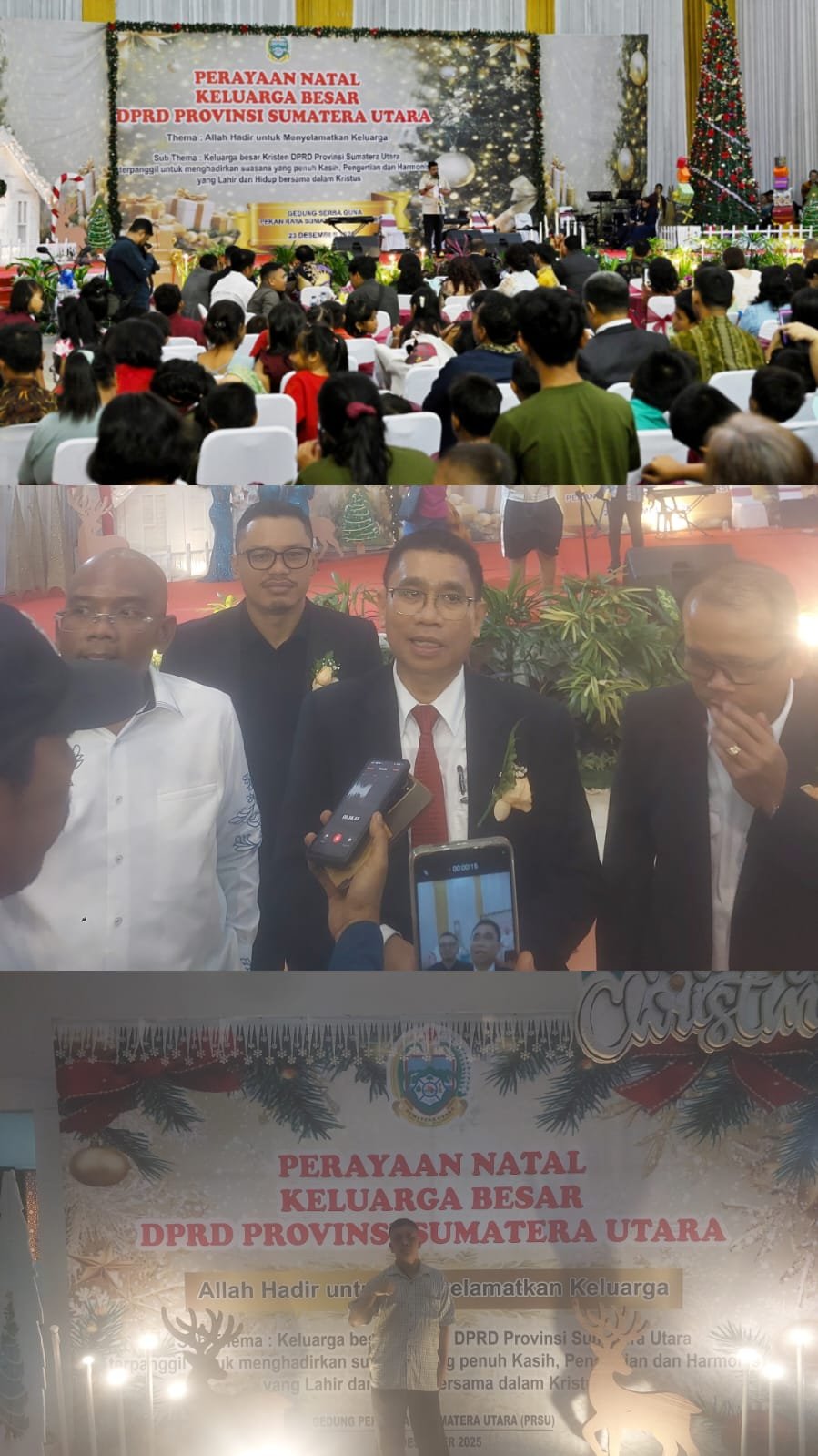 Medan- Satupena.co.id- Gubernur Sumatera Utara (Sumut) Muhammad Bobby Afif Nasution menghadiri Perayaan Natal Keluarga Besar Dewan Perwakilan Rakyat Daerah (DPRD) Sumut yang digelar di Gedung Serbaguna Pekan Raya Sumatera Utara (PRSU), Jalan Gatot Subroto, Medan, Selasa (23/12/2025). Perayaan Natal berlangsung khidmat dan penuh kebersamaan dengan mengusung tema “Allah Hadir untuk Menyelamatkan Keluarga”.
