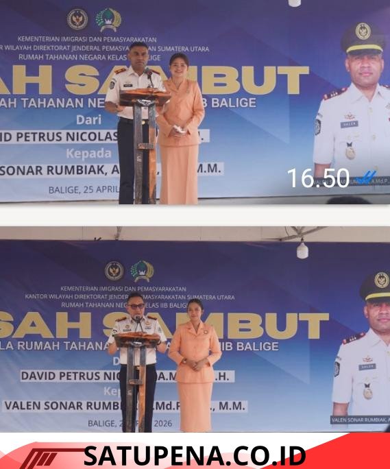 David Petrus Nicolas, A.Md.I.P., S.H sedangkan pejabat baru dipercayakan kepada Valen Sonar Rumbiak, A.Md.P., S.H, M.H. Pisah-sambut Kepala Rutan Kelas IIB Balige digelar di Rutan Kelas IIB Balige pada Sabtu (25/4/2026).