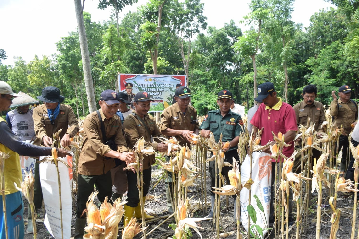 Panen raya jagung tahap pertama ini dihadiri oleh berbagai pihak, termasuk jajaran Perhutani KPH Jombang, Polres Nganjuk, Dinas Pertanian Nganjuk, Forkopincam Ngluyu, Pemerintah Desa, serta Lembaga Masyarakat Desa Hutan (LMDH) Wono Lestari.