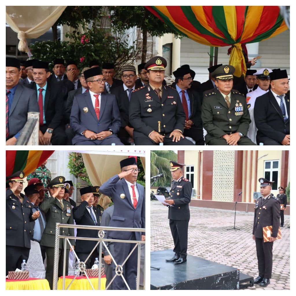 Upacara yang langsung dipimpin oleh Wakapolres Pidie Jaya, Kompol Muara Uli Hamonangan. Sedangkan Kapolres Pidie Jaya, AKBP Dodon Priyambodo mengikuti acara tersebut di Halaman Kantor Bupati Pidie Jaya bersama pejabat setempat.