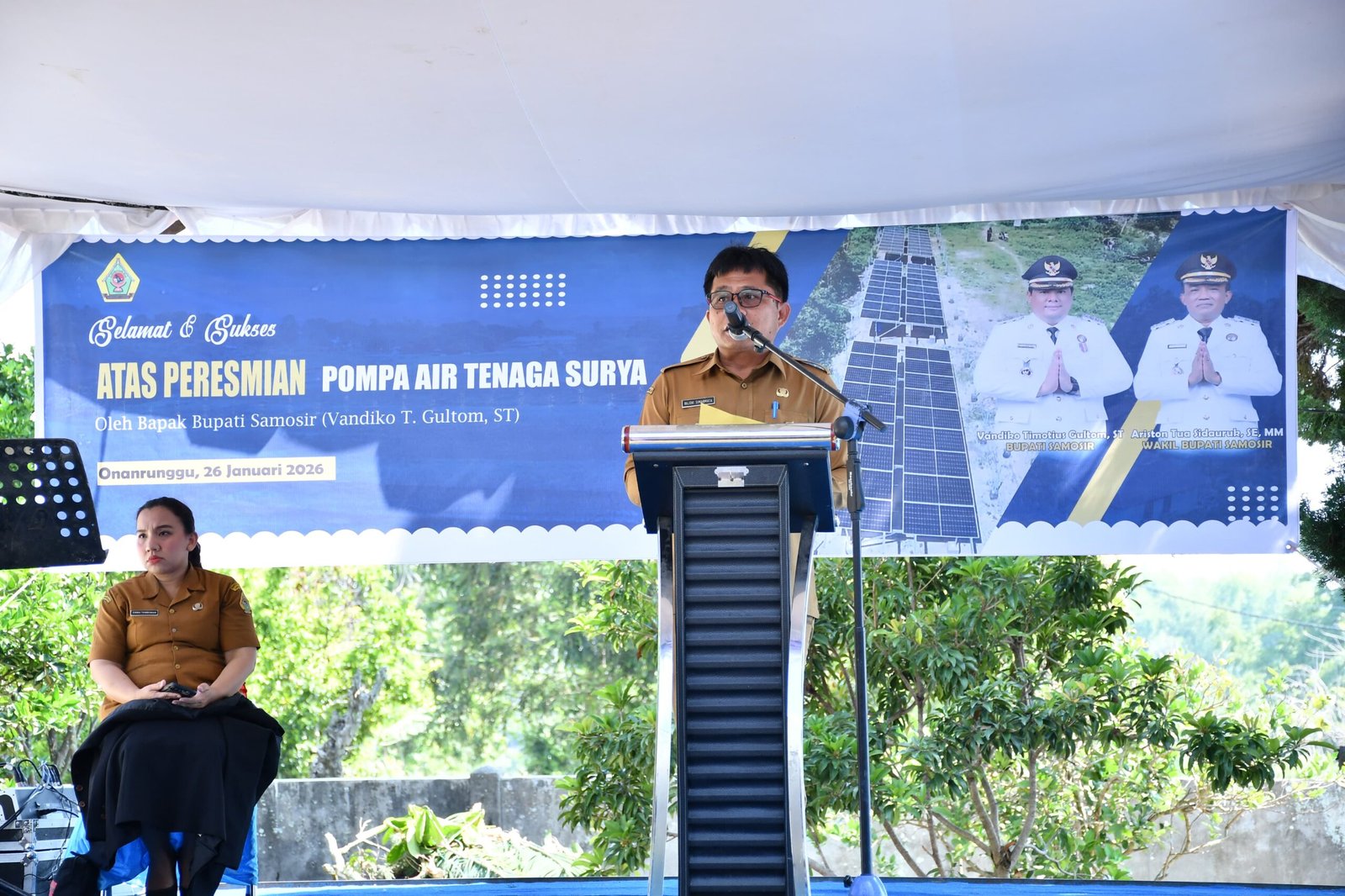 Samosir, Satupena.co.id- Upaya memperkuat ketahanan pangan terus dilakukan Pemerintah Kabupaten Samosir melalui pembangunan infrastruktur pertanian berkelanjutan. Salah satunya ditandai dengan peresmian Pompa Air Tenaga Surya (PATS) di Kecamatan Onan Runggu oleh Bupati Samosir Vandiko T. Gultom, 26/01/2026.