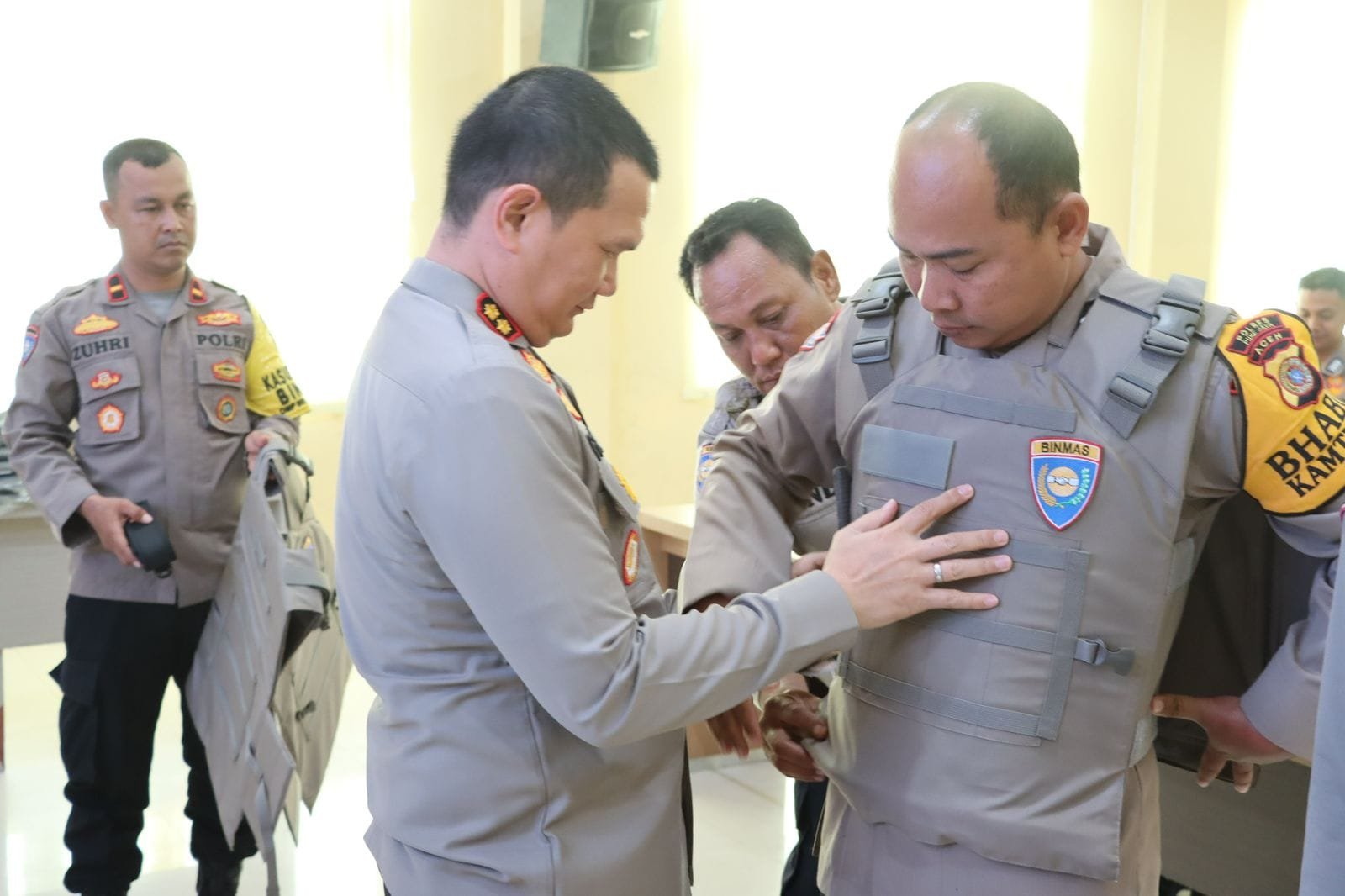 “Rompi anti sayat dan senter ini kami distribusikan agar Bhabinkamtibmas semakin siap menghadapi tantangan di lapangan dengan tanggap, unggul dalam pelayanan, dan tetap humanis dalam berinteraksi dengan masyarakat,” ujar Kapolres Ahmad Faisal.