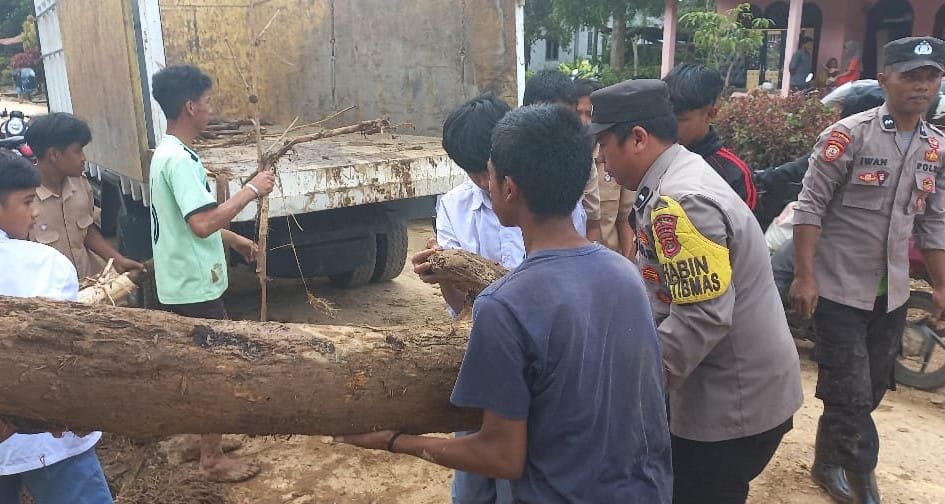 Kata Kapolres AKBP Dody, Hari kita kembali kerahkan puluhan Personel Polsek Silih Nara dan Subsektor Rusip Antara, juga hadir Babinsa bersama warga setempat bahu membahu melakukan pembersihan material tanah longsor dan material kayu yg terbawa oleh banjir bandang tersebut.