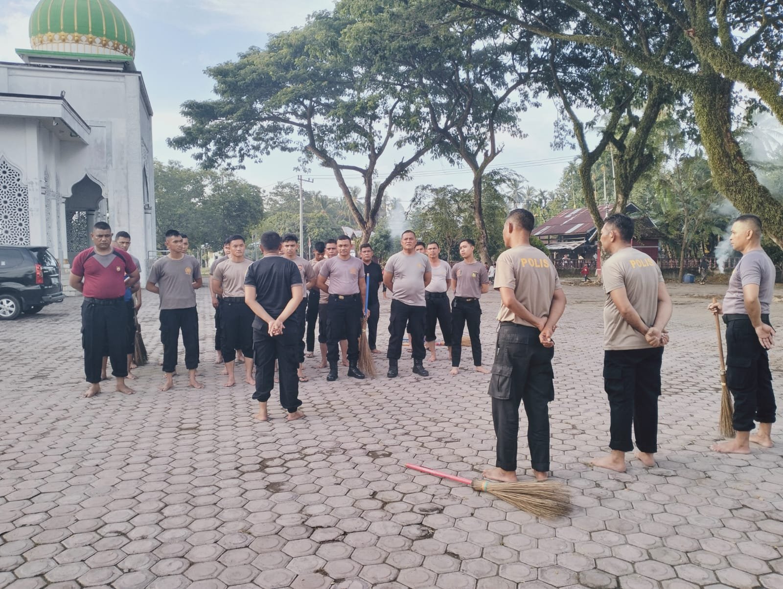 Pidie Jaya– Sat Samapta Polres Pidie Jaya bersama personel Polsek melaksanakan kegiatan korve sebagai bagian dari upaya mempererat hubungan dengan masyarakat. bertempat di Masjid Agung Tgk Chik Pante Geulima, Meureudu, Kabupaten Pidie Jaya, Kamis, 18 Juli 2024, pukul 16:00 s/d 18:00 WIB,