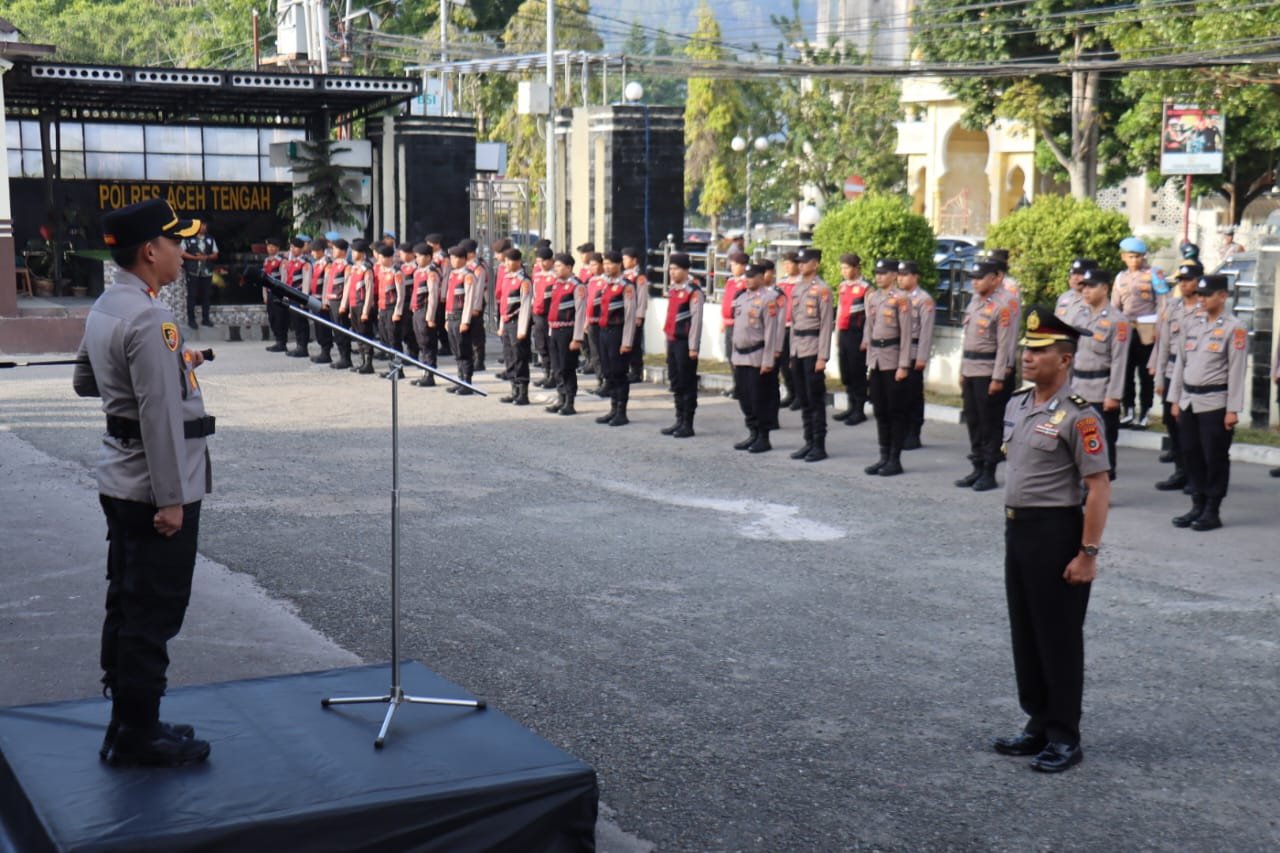 Usai upacara, Kapolres memberikan penghargaan kepada 15 personel Polres Aceh Tengah atas prestasi mereka dalam berbagai bidang.