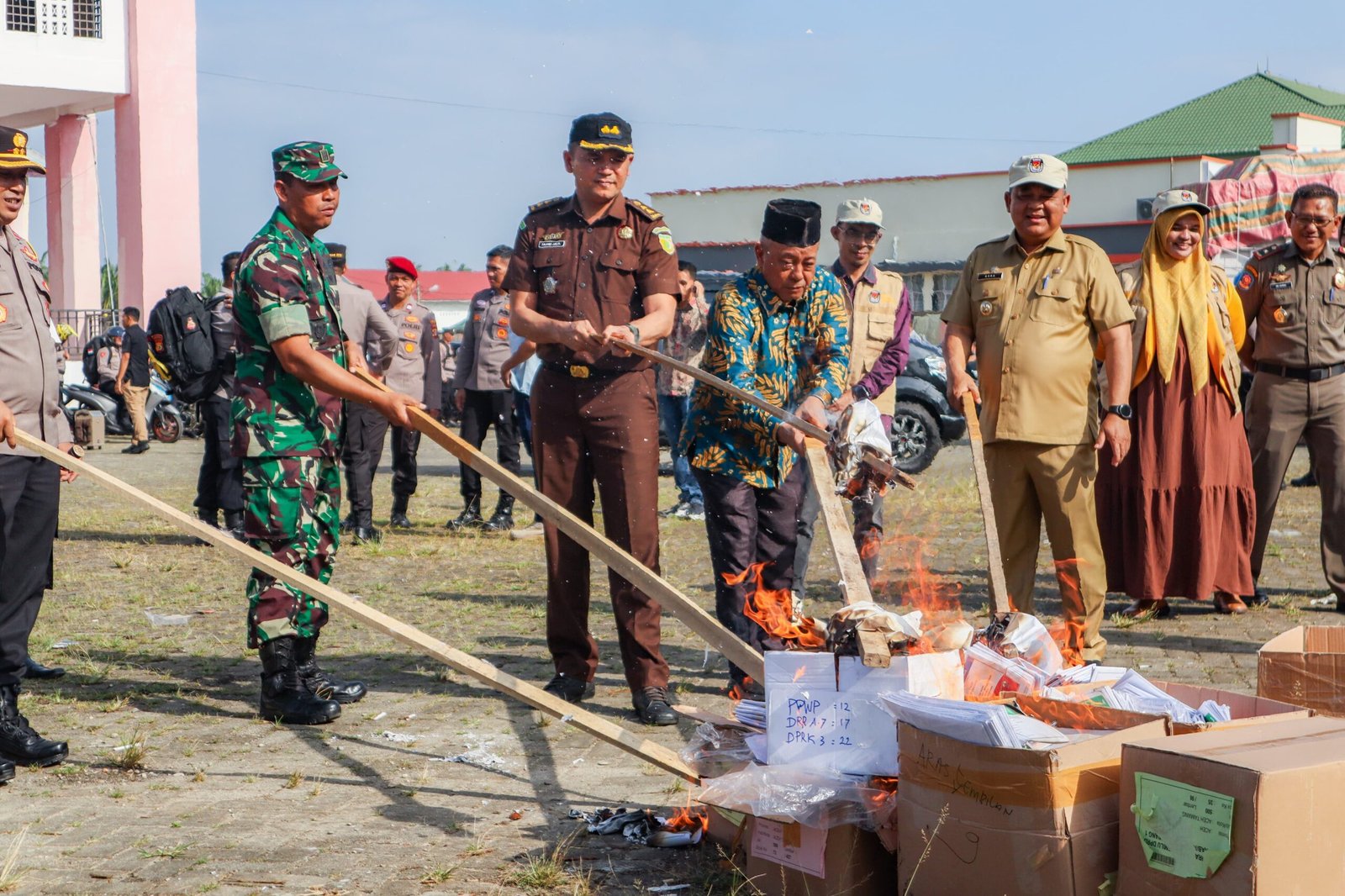 Pj Bupati Asra Bersama KIP Dan Unsur Forkopimda Musnahkan Surat Suara Rusak