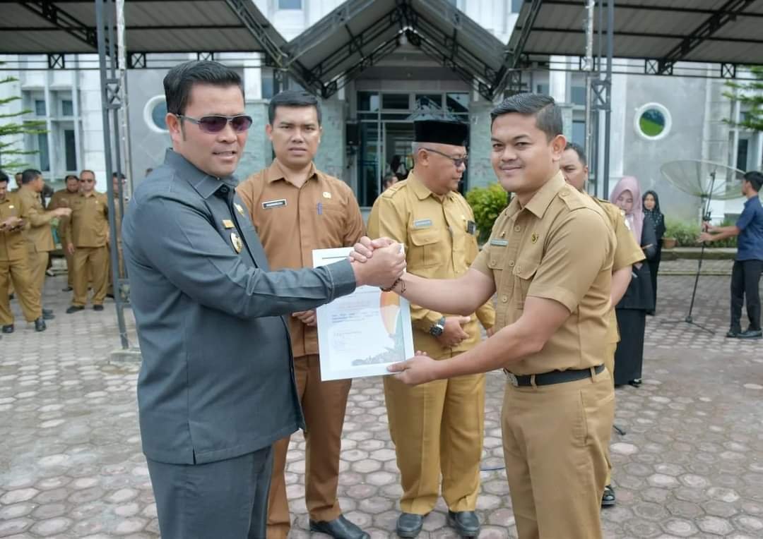 satupena.co.id: Penjabat Bupati Drs. Haili Yoga, M.Si memberikan piagam penghargaan kepada sejumlah Dinas, Badan, dan Kantor di lingkungan Pemkab setempat pada awal masuk kerja di Tahun 2024.