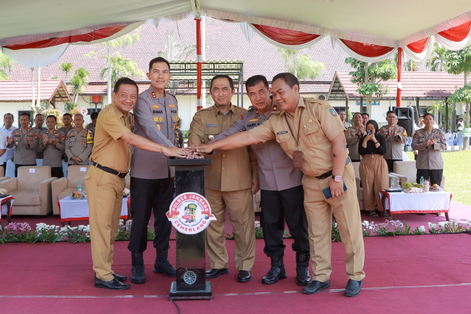 Peresmian Videotrone Tatag Trawang Tungga ini digelar di Lapangan Polres Jombang, Kamis (22/08/2024). Hadir dalam peresmian itu Sekdakab Jombang Agus Purnomo, Kadis Kominfo Endro Wahyudi , Wakapolres Kompol Hari Kurniawan,Kabag, Kasat, para perwira, Kapolsek Jajaran serta Kontraktor pelaksana.