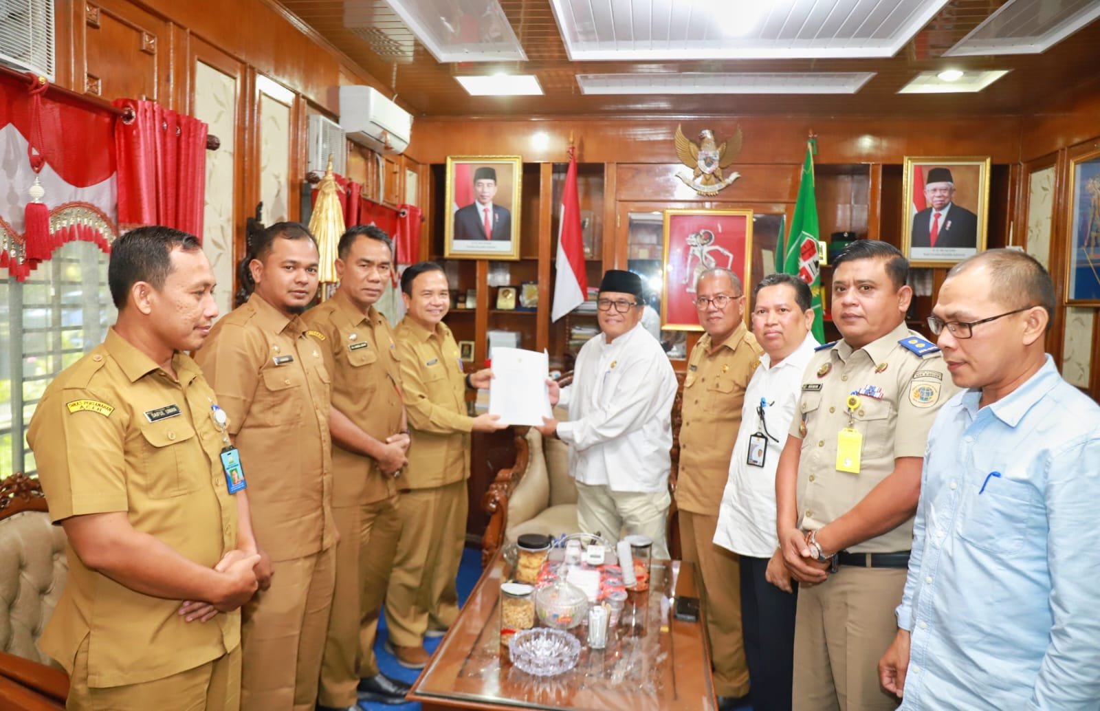 SK Pelimpahan Kewenangan Penetapan Lokasi Pengadaan Tanah Bendungan Rukoh diserahkan langsung oleh Kepala Dinas Pertanahan Aceh, Ir. Sunawardi, M.Si.