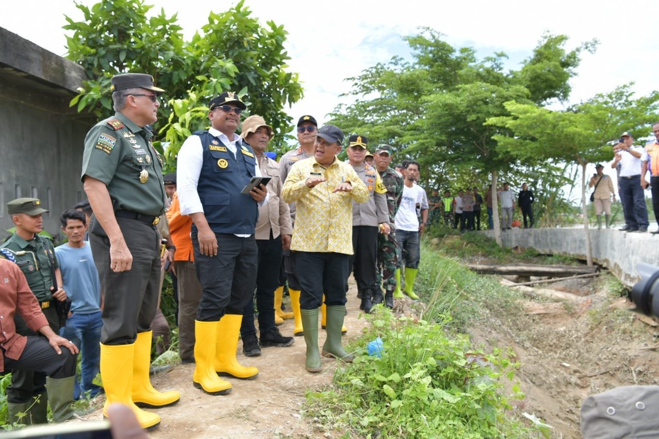 Panglima Komando Daerah Militer Iskandar Muda (Pangdam IM) Mayor Jenderal TNI Niko Fahrizal, M.Tr. (Han) bersama Penjabat (Pj.) Gubernur Aceh Dr. Drs. Safrizal ZA, M.Si., dan Kapolda Aceh Irjen Pol. Achmad Kartiko, S. I. K., M. H, melaksanakan peninjauan ke lokasi terdampak banjir di Desa Muka Sungai Kuruk, Kecamatan Seruway, Kabupaten Aceh Tamiang. Kamis (17/10/24)