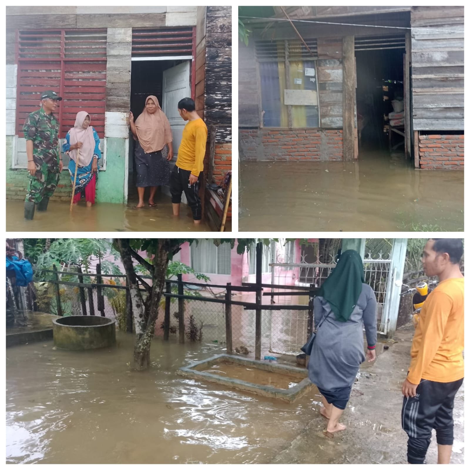 Mengetahui wilayah binaannya terdampak banjir, Babinsa Koramil 16/Banda Sakti, Serda Saiful Kholid, bersama PJ Keuchik Gampong Ulee Jalan, Sulaiman, serta aparatur gampong lainnya segera turun ke lokasi untuk melakukan monitoring dan memantau kondisi terkini warga yang terdampak.