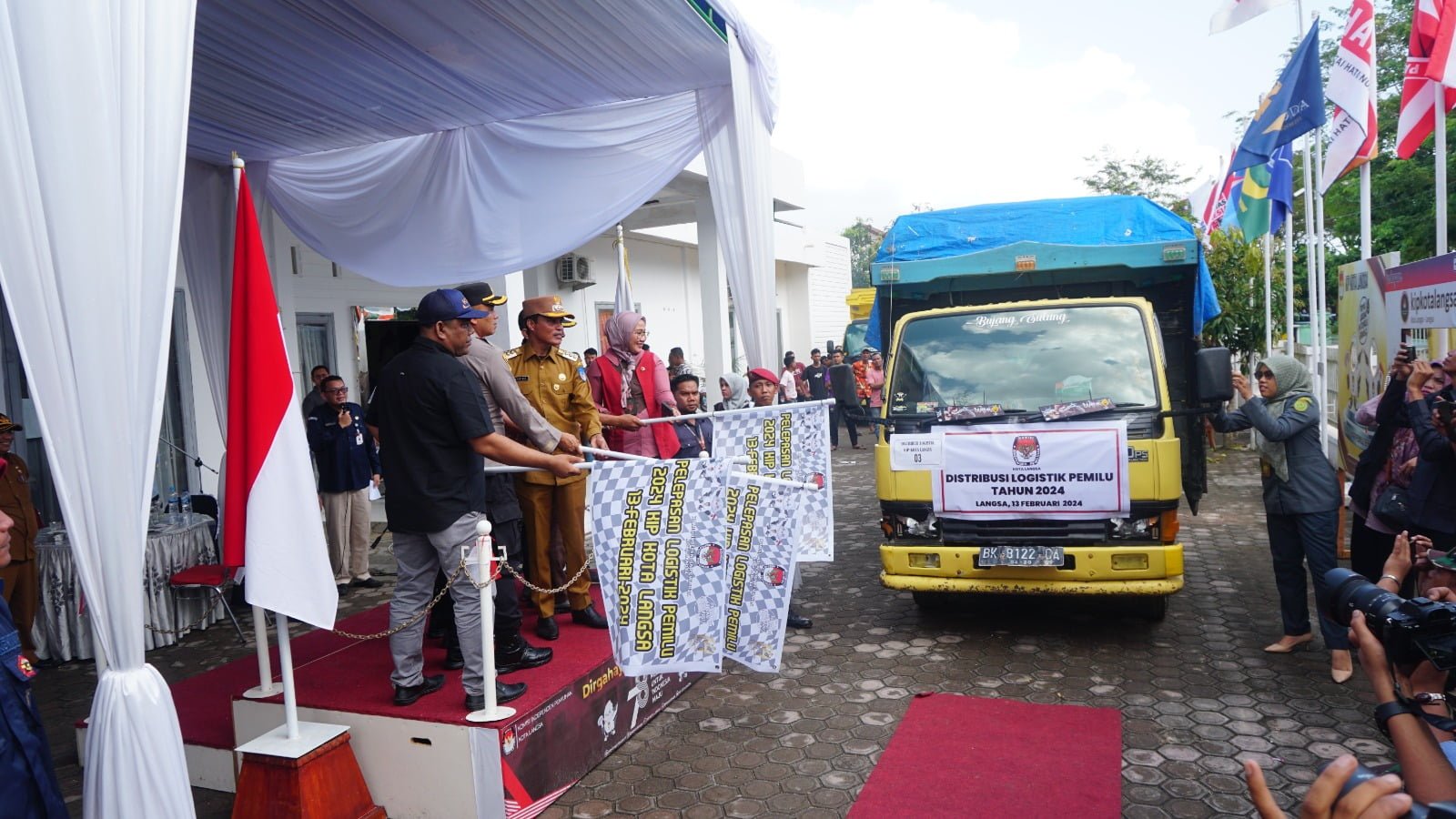 Kota Langsa | satupena.co.id — Penjabat (Pj) Walikota Langsa Syaridin, S.Pd, M.Pd, melepas armada Pendistribusian Logistik Pemilihan Umum Tahun 2024 bertempat di Gedung Kantor KIP Kota Langsa, Jalan Perumnas, Gampong Birem Puntong, Kecamatan Langsa Baro, Kota Langsa, Selasa (13/2/2024).