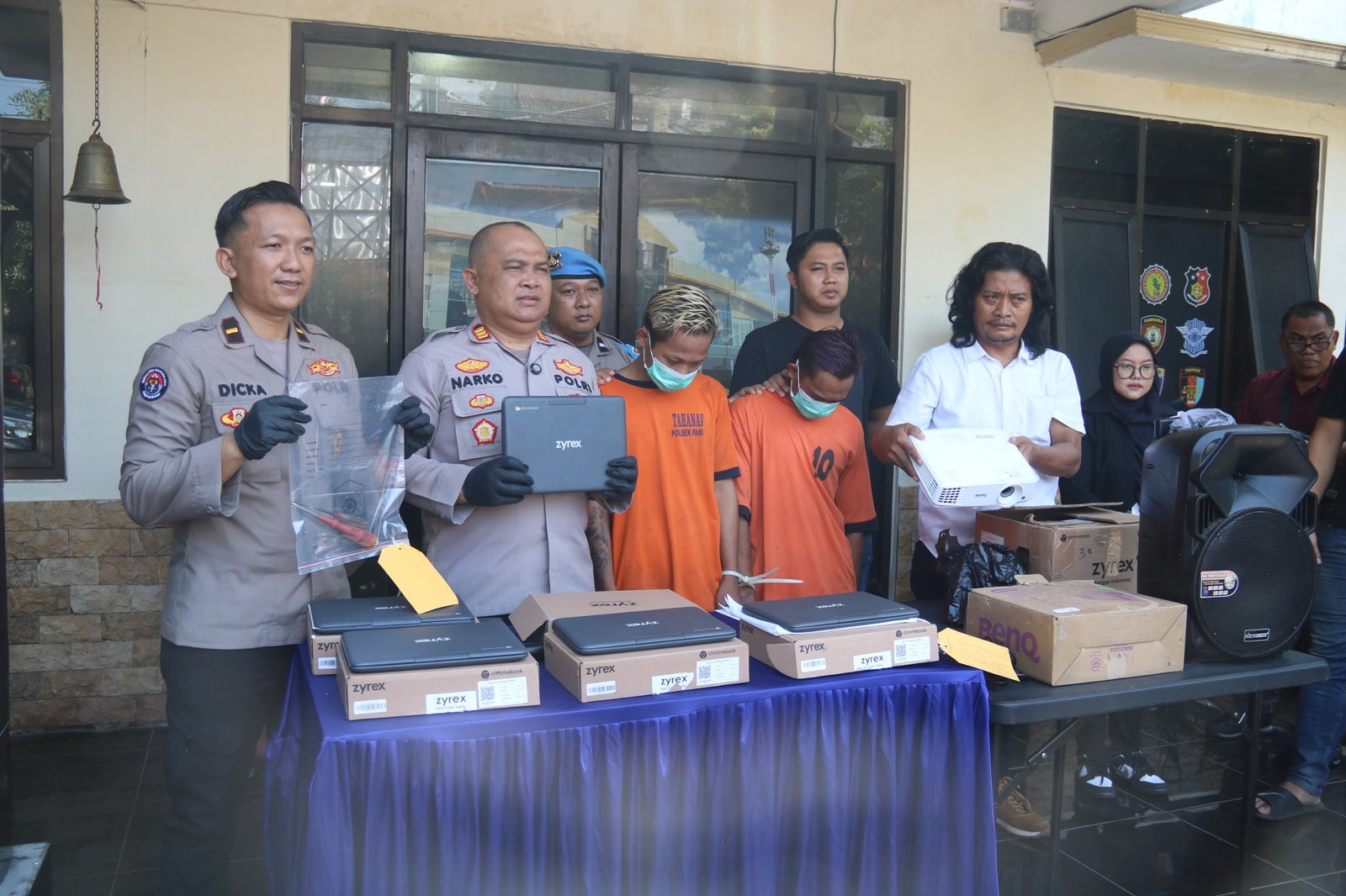 “Modusnya yaitu tersangka mencongkel jendela menggunakan obeng kemudian setelah masuk mencongkel beberapa almari yang mana almari tersebut ada isinya yaitu berupa laptop,” imbuhnya.