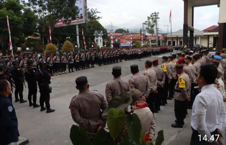 Polres Aceh Tengah, Polda Aceh, menggelar apel serpas (pergeseran pasukan) pengamanan TPS (Tempat Pemungutan Suara) Pemilu 2024, Senin 12 Februari 2024.