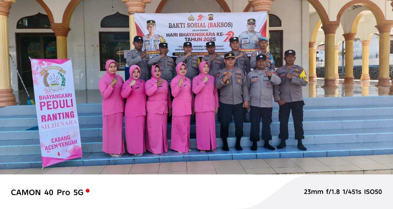 Dalam rangka menyambut Hari Bhayangkara ke-79 Tahun 2025, jajaran Polres Aceh Tengah bersama Polsek Silih Nara melaksanakan kegiatan Bakti Sosial dan Bakti Religi di Masjid Nurul Iman, Kampung Burni Bius, Kecamatan Silih Nara, Kamis pagi (19/6/2025).