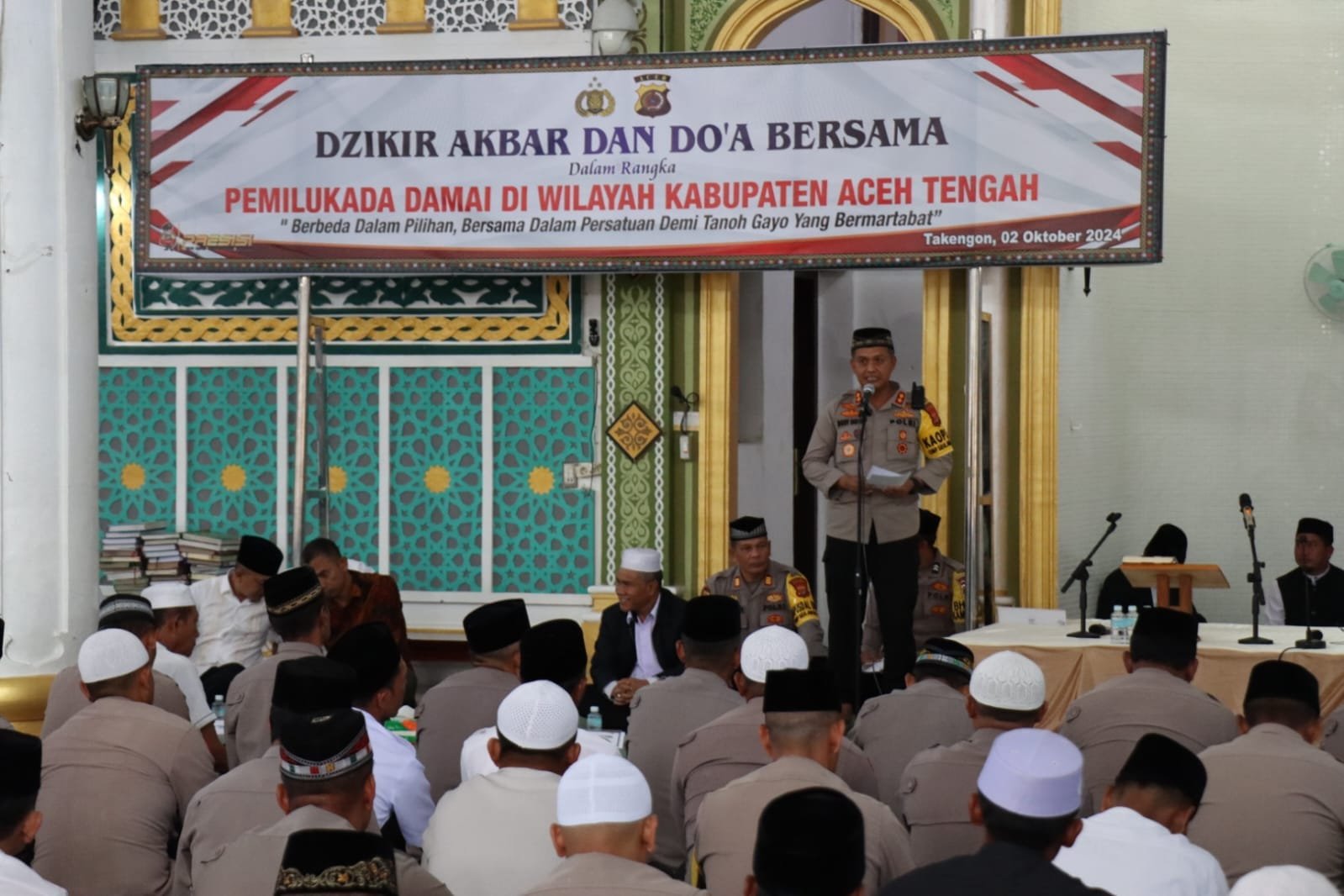 Polres Aceh Tengah Gelar Zikir Akbar dan Doa Bersama Ciptakan Pemilukada Damai Di Kabupaten Setempat