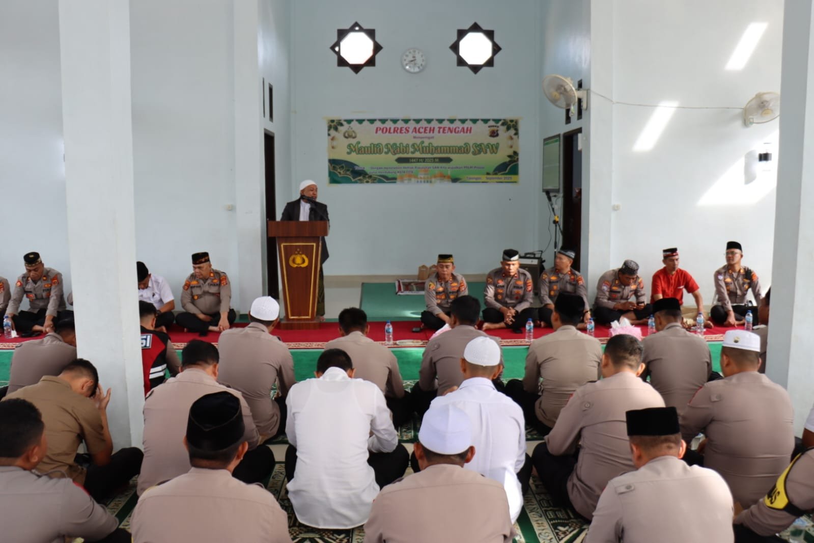 Polres Aceh Tengah menggelar peringatan Maulid Nabi Muhammad SAW 1447 H/2025 di Masjid Babuttaqwa Asrama Polisi, Kamis pagi (4/9/2025) pukul 08.30 WIB.