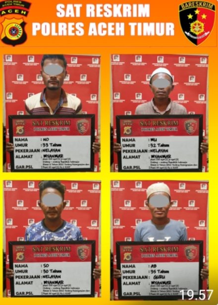 Penyidik dari Unit IV Perlindungan Perempuan dan Anak (PPA) Satreskrim Polres Aceh Timur, Polda Aceh kembali menetapkan 4 (empat) warga negara asing (WNA) sebagai tersangka baru pada tindak pidana penyelundupan manusia (TPPM) terhadap 264 imigran illegal etnis Rohingya yang diangkut dengan menggunakan dua kapal dan mendarat di Kuala Sembilang, Desa Alue Bu Jalan Baroh, Kecamatan Peureulak Barat, Kabupaten Aceh Timur pada hari Minggu, (05/01/2025).