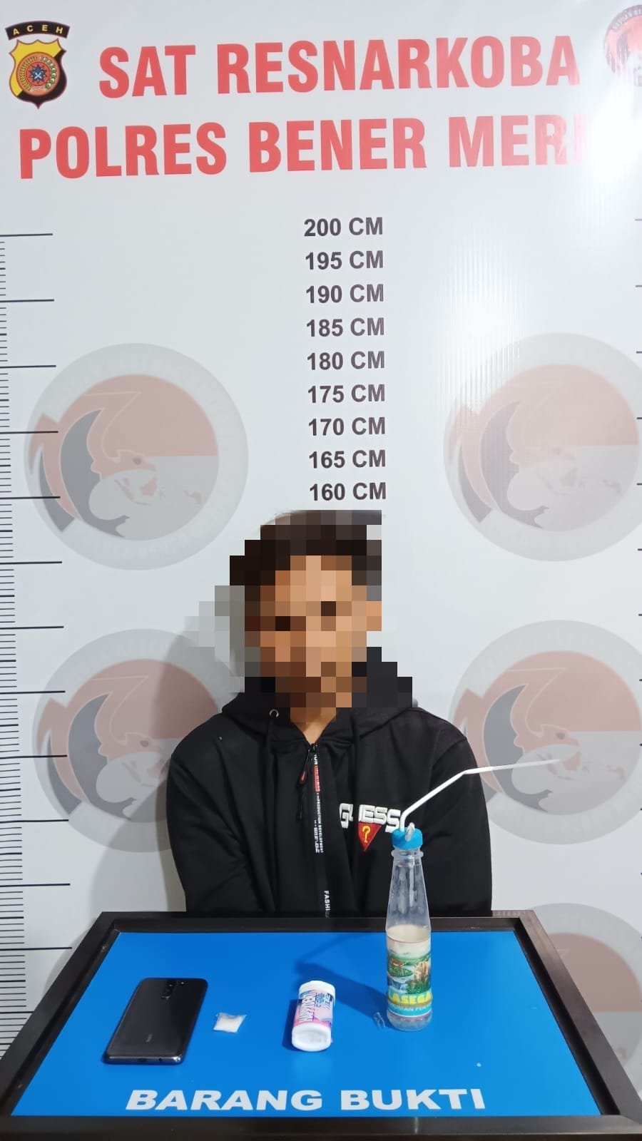Redelong -satupena.co.id: Kepolisian Resort (Polres) Bener Meriah berhasil menangkap seorang pria berinisial F (25), yang diduga terlibat dalam penyalahgunaan narkotika jenis sabu. Penangkapan ini dilakukan berdasarkan informasi dari masyarakat yang aktif dalam upaya pemberantasan narkotika.