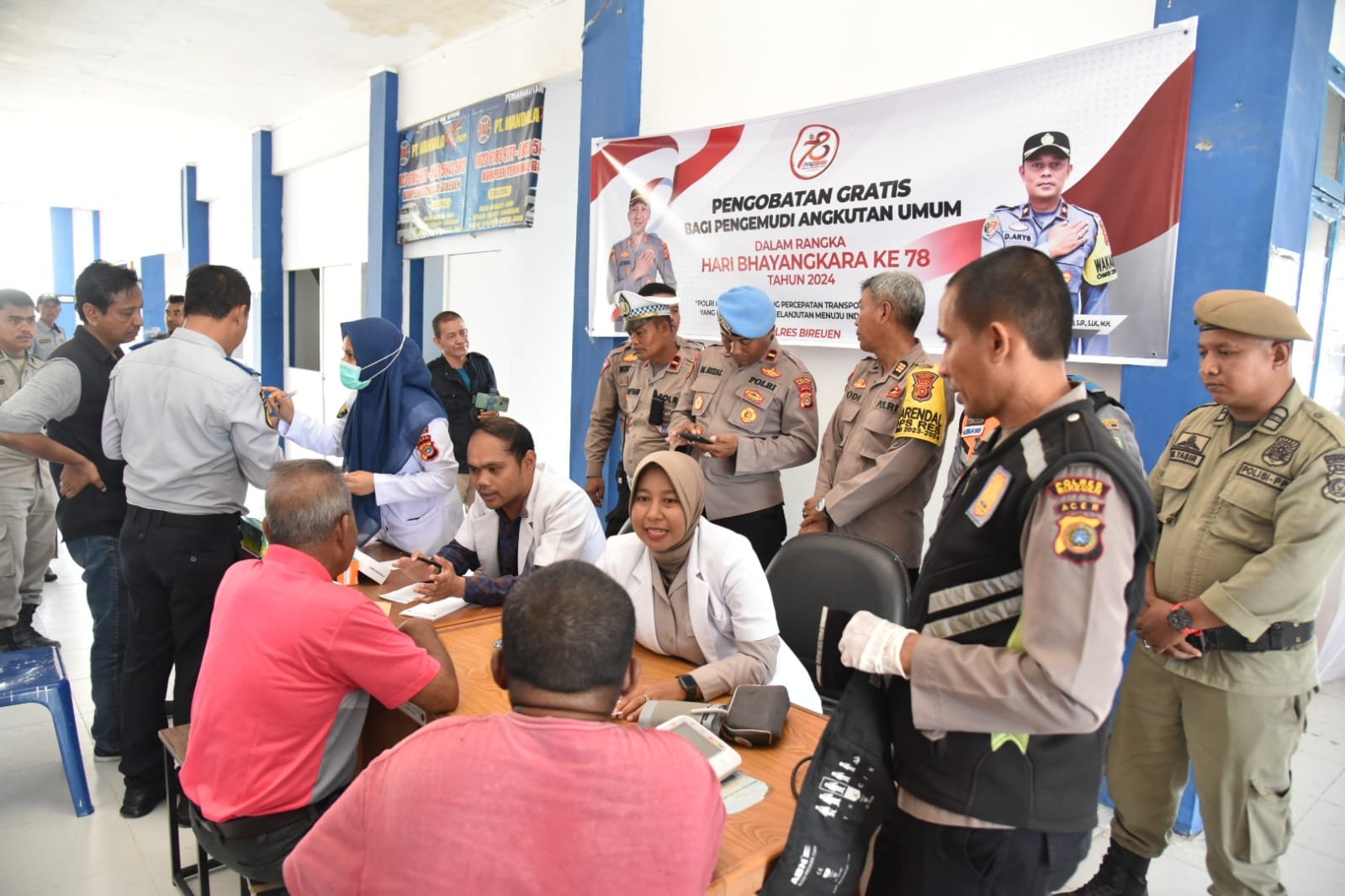 ” Hari ini kami melaksanakan Bakti Kesehatan berupa pengobatan gratis bagi para pengemudi angkutan umum di terminal Type B Kabupaten Bireuen, kegiatan ini kami laksanakan dalam rangka Hari Bhayangkara ke 78, tentunya ini juga bentuk rasa kepedulian kami terhadap sesama khususnya bagi para supir angkutan umum, harapannya dengan mendapatkan pelayanan dan pengobatan ini mereka bisa beraktifitas dengan kondisi kesehatan dan stamina yang prima” terang dr yenni
