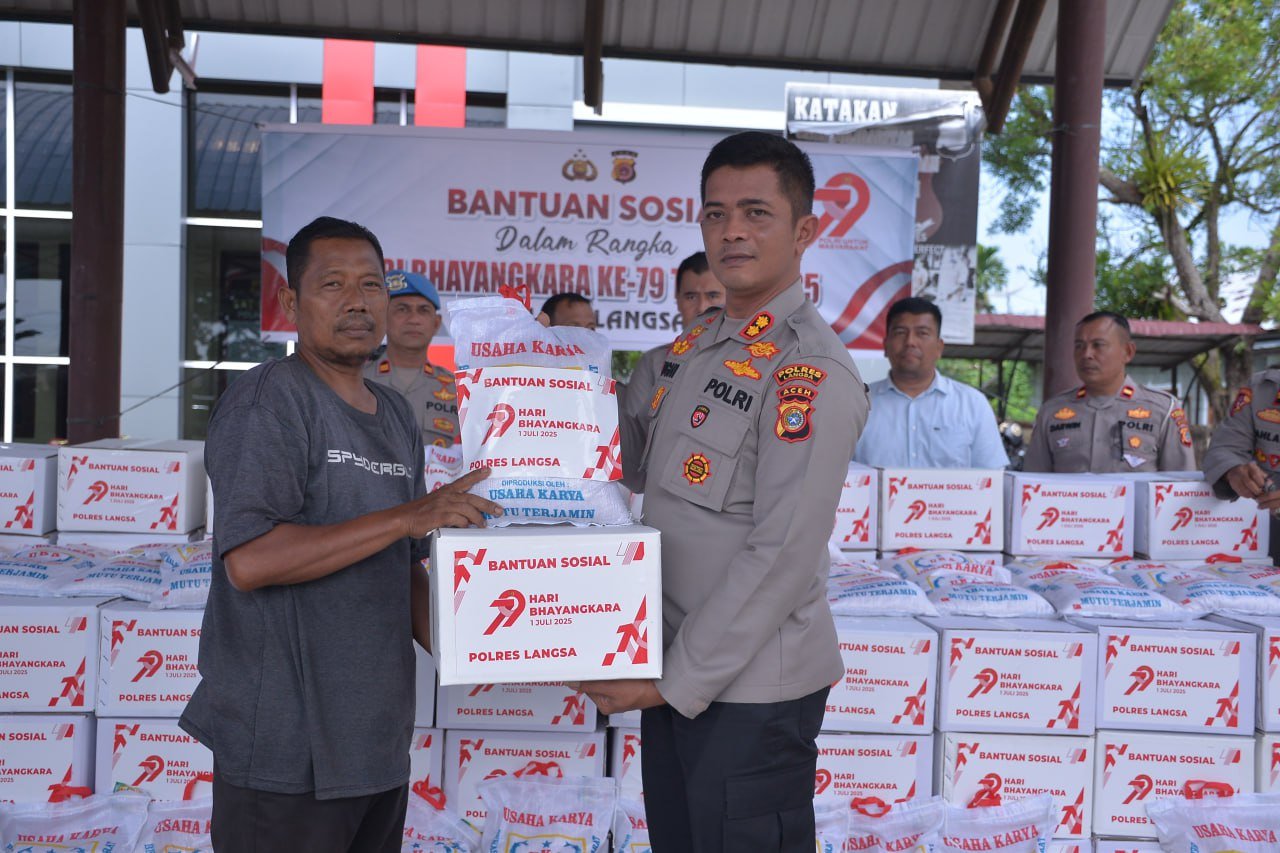 Polres Langsa Salurkan 200 Paket Sembako Sambut Hari Bhayangkara ke-79